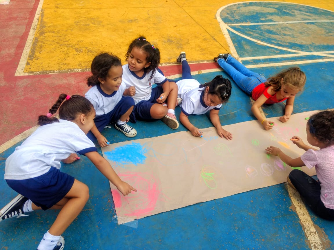 Na praça foi muita brincadeira livre, contato direto com a natureza local, pinturas em papel craft e muita alegria durante todo o passeio que durou aproximadamente uma hora e meia entre percurso e permanência na praça.