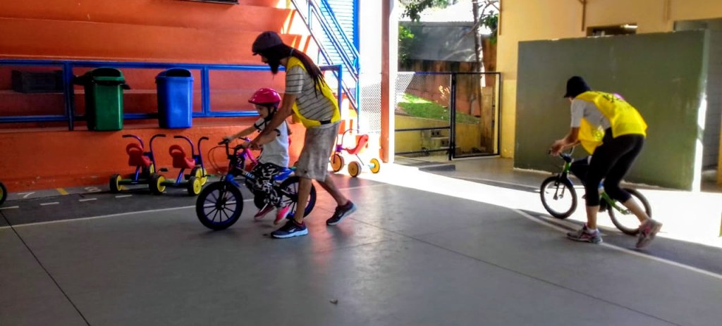 Portanto, além de desenvolver habilidades motoras, aprender a pedalar sem rodinhas, é uma importante aprendizagem para os pequenos cidadãos se divertirem e futuramente se transportarem pelas ciclovias!