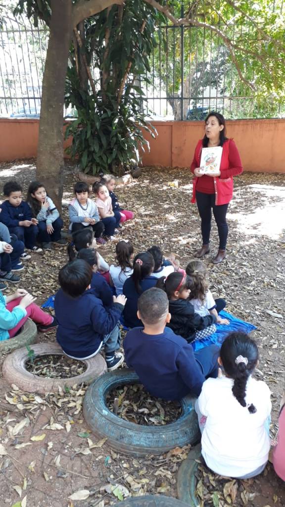 No dia da leitura, as crianças são reagrupadas em diferentes espaços e ouvem a história com crianças e professora diferentes de seu cotidiano!