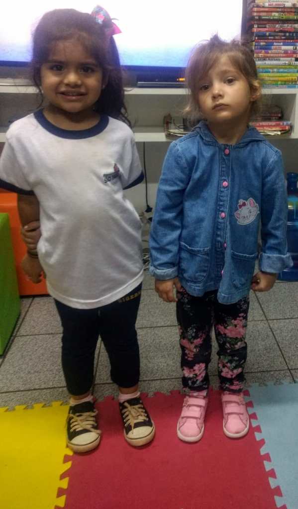Na próxima etapa, as crianças realizaram a Dinâmica das Diferenças, onde elas escolheram uma criança que fosse bem diferente, se posicionaram na frente da turma, para todos destacarem o que a dupla teria de igual e o que teria de diferente, fisicamente. Todas participaram da dinâmica com