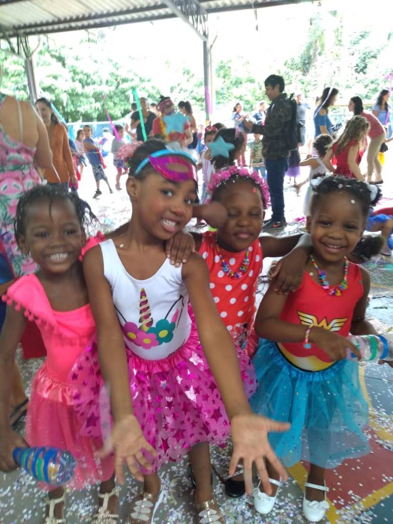 Então, ao retornarmos para a escola, a festa continuou na quadra, como num salão, cheio de confetis, serpentinas, cores e música!
