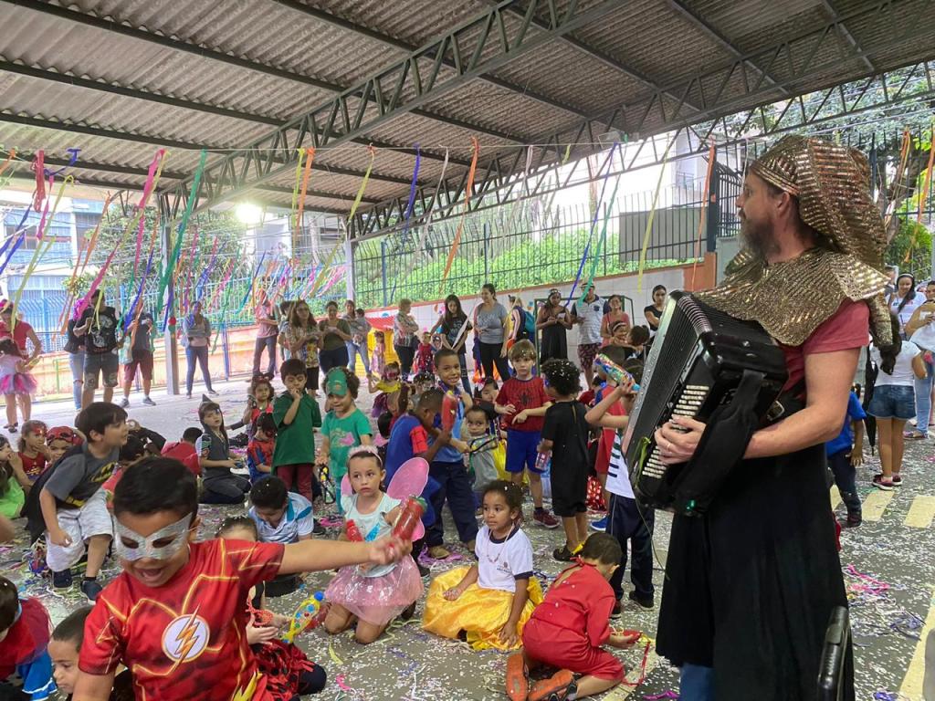 O Carnaval, festa popular brasileira, foi trazido para a vivência de nossas crianças e famílias como uma manifestação cultural brincante, de alegre convivência na escola e no território, como propõe nossa proposta curricular! Esta perspectiva de trabalho com a cultura popular, respeitando todas as religiões e explicitando o princípio da laicidade da escola pública, foi clara e previamente tratada na 1a. reunião do Conselho de Escola, com a presença das famílias.