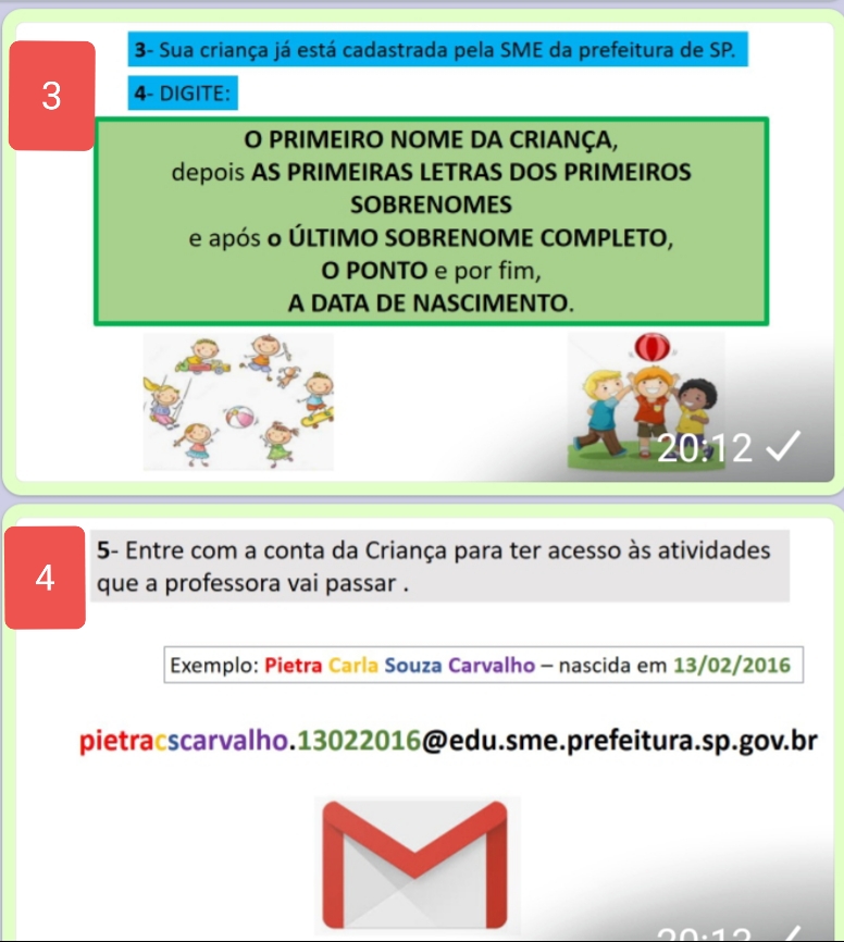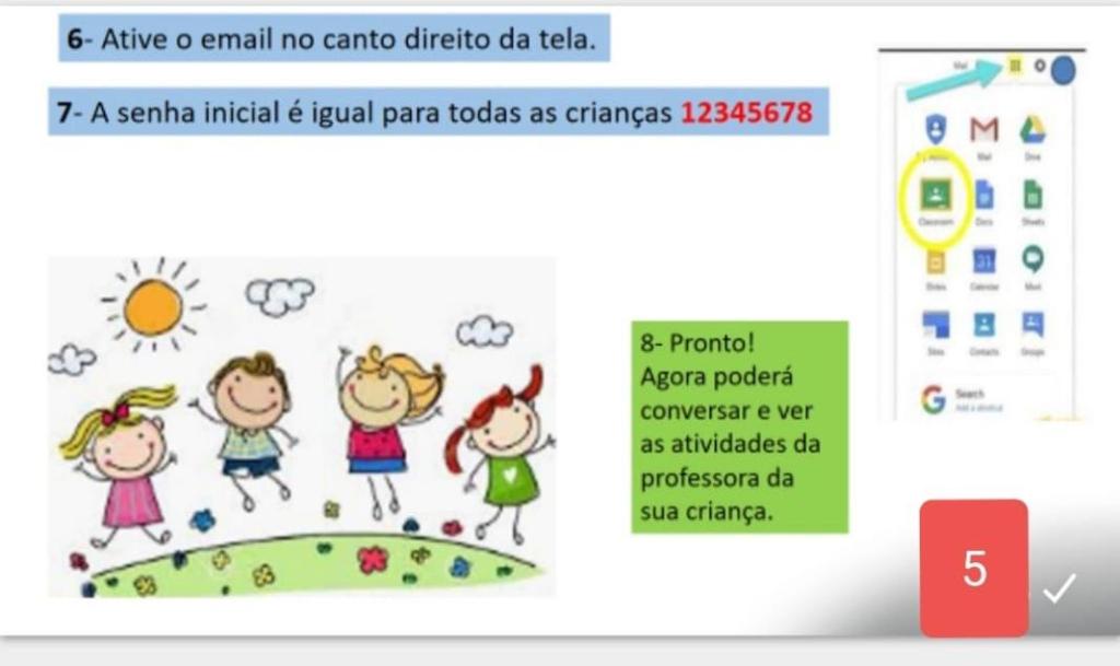 Mesmo que a concepção de Educação Infantil na Rede Municipal de São Paulo não seja pautada na Educação a Distância (EAD), mas nas interações e brincadeiras, precisamos neste período de distanciamento, retornar às aulas para que todas as crianças possam ter acesso às atividades propostas para a Educação Infantil . Visto que os protocolos de retorno às aulas autorizam o atendimento presencial de apenas 35% das turmas, utilizaremos a plataforma do Google Sala de Aula para sugerir atividade que possam ser realizadas pelas crianças e suas família em casa .