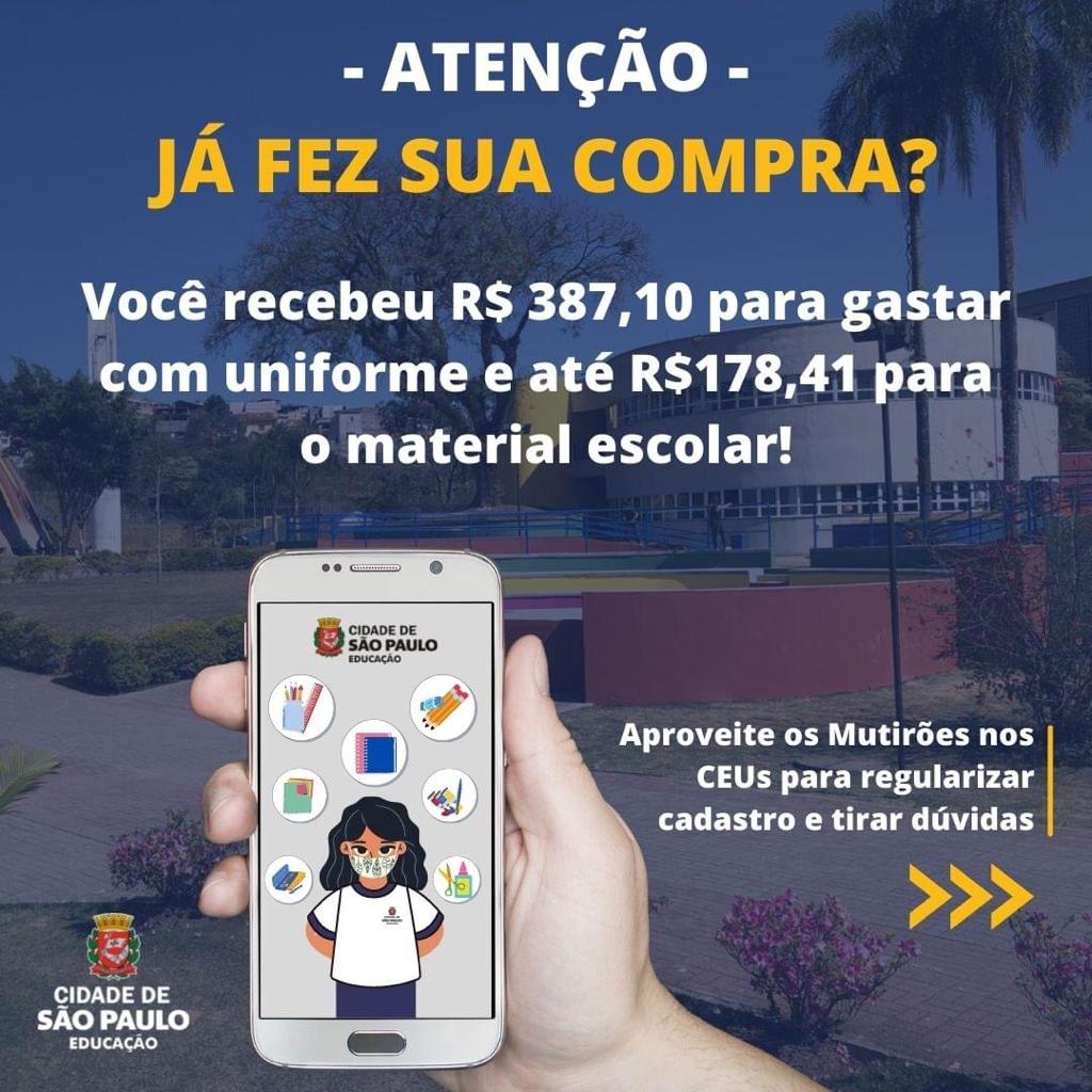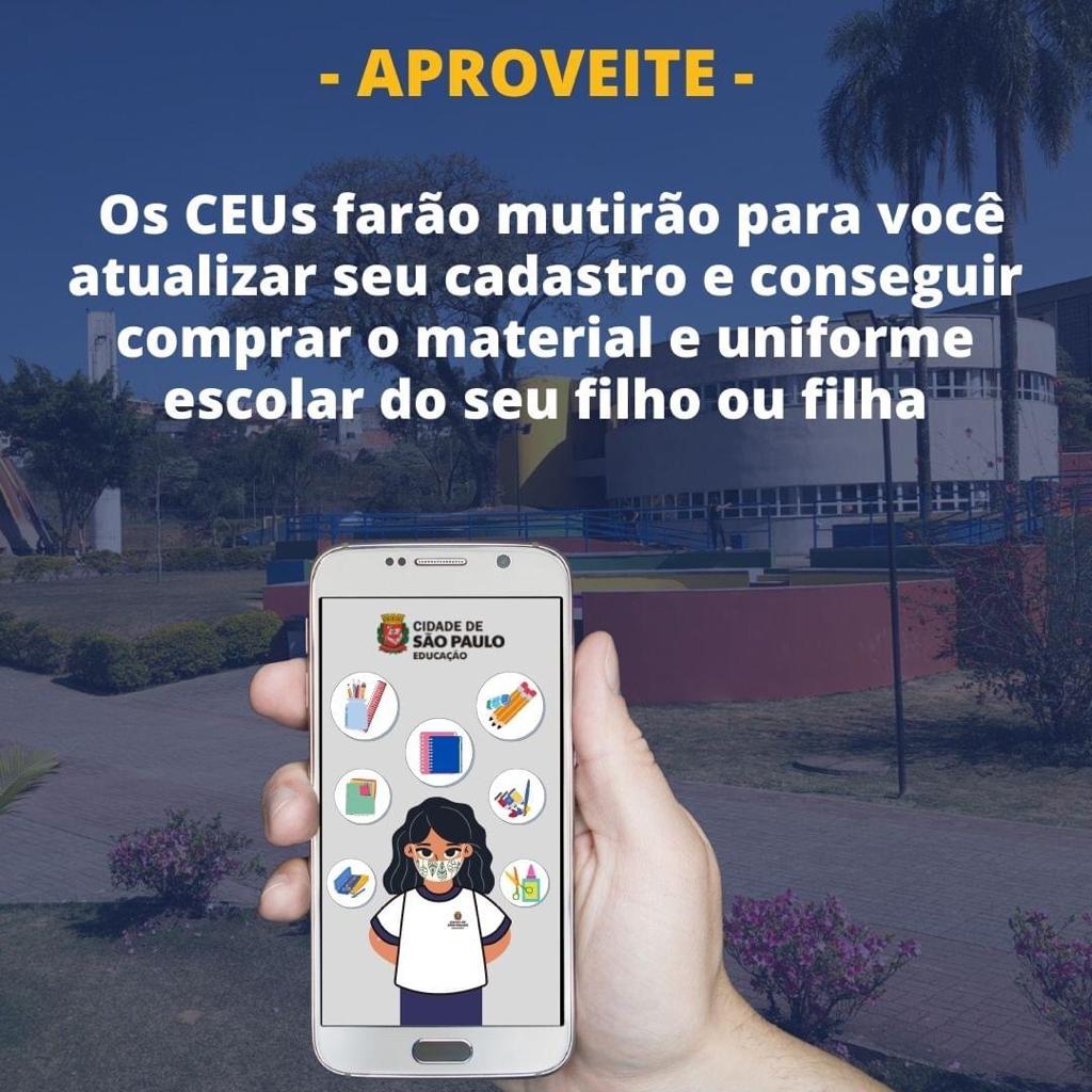 Famílias que ainda não conseguiram utilizar os créditos para compra dos uniformes e materiais escolares, poderão comparecer ao CEU (Centro Educacional Unificado) mais próximo da residência, das 10h às 17h, para: