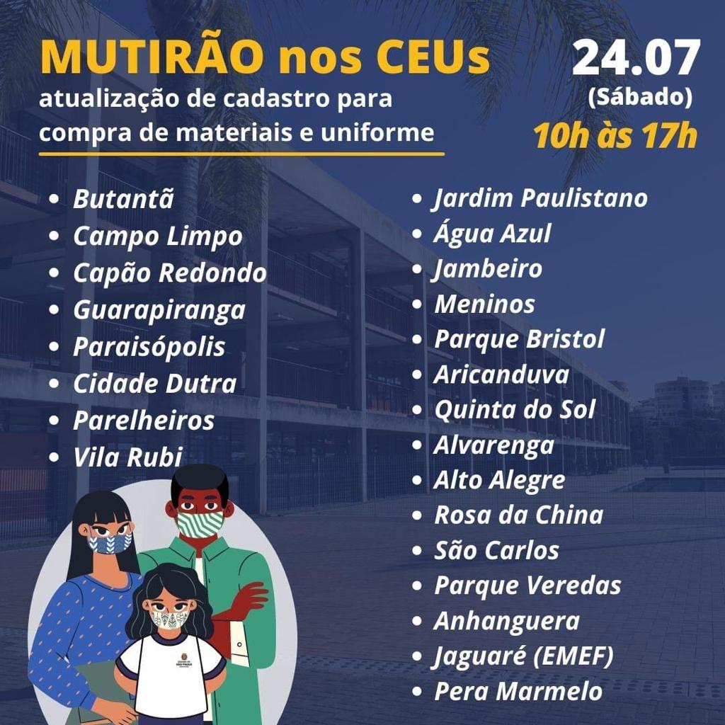 ATENÇÃO | Neste sábado (24), vai acontecer o Mutirão dos CEUs!