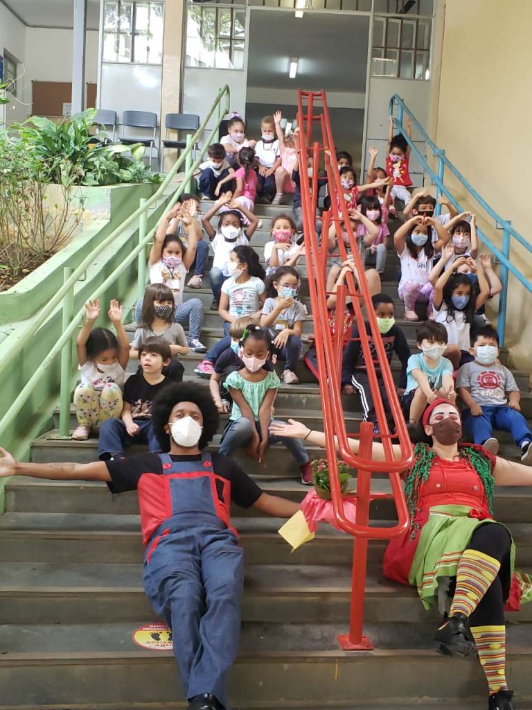 Compartilhamos inicialmente um momento MUITO especial que vivemos na escola em comemoração à Semana da Criança: o show Baú Musical com o grupo Impulsionando Arte!
