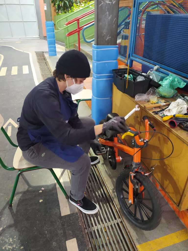 Com o apoio da Associação de Pais e Mestres, conseguimos fazer a manutenção semestral das bicicletas com a mecânica Mari, participante do Projeto “Viver de bike”, também promovido pelo Instituto ARO 60: