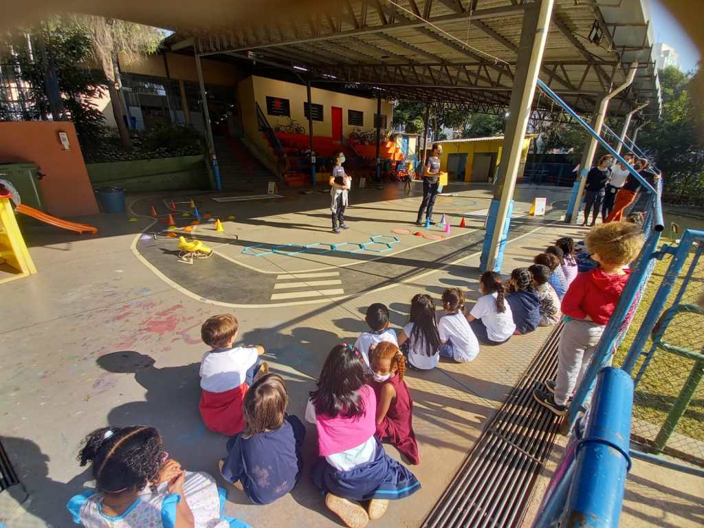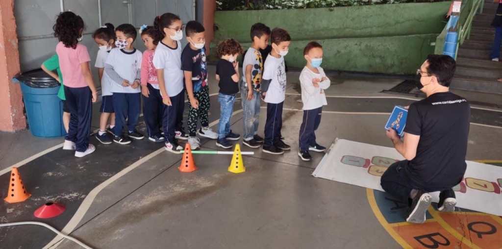 O Instituto Corrida Amiga compareceu para que as crianças vivenciassem o “circuito do pedestre”, atividade que compõe o projeto “Escola Ativa – Despertar para o esporte”. Neste circuito, as crianças se movimentaram com desafios análogos aos enfrentados cotidianamente nas calçadas de nossa cidade e que também representam desafios de motricidade.
