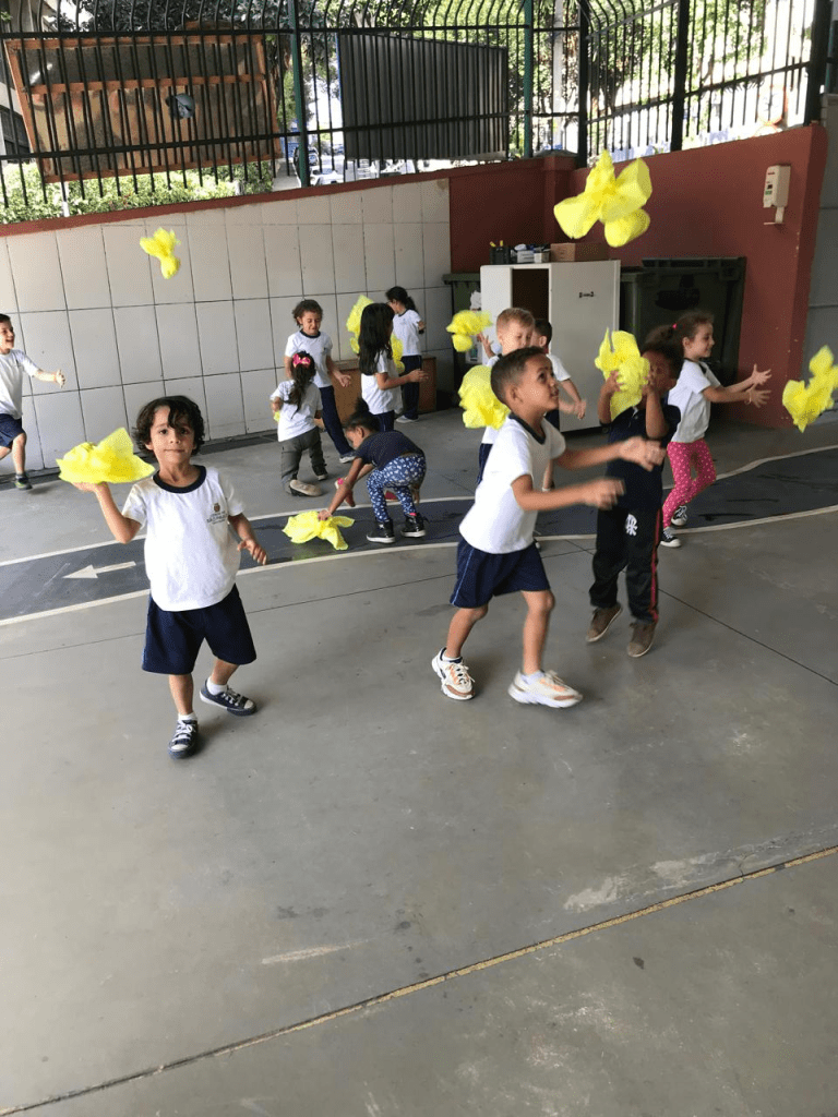 Através da música: Paxuá e Paramim – clipe oficial de Carlinhos Brown, conhecemos uma linda história e as crianças acompanharam a música usando alguns instrumentos como chocalhos, cascas de coco e pandeiros e depois aprenderam a coreografia da música como podemos ver na foto e no vídeo: