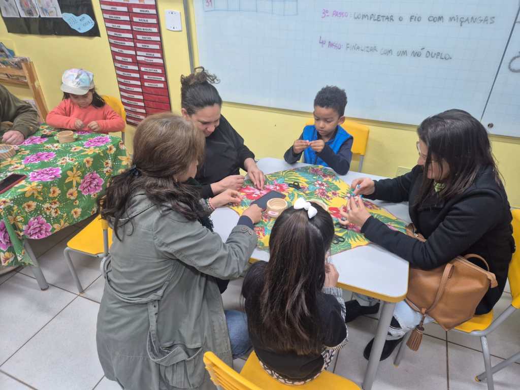 Oficina de criação de pulseiras de miçanga.