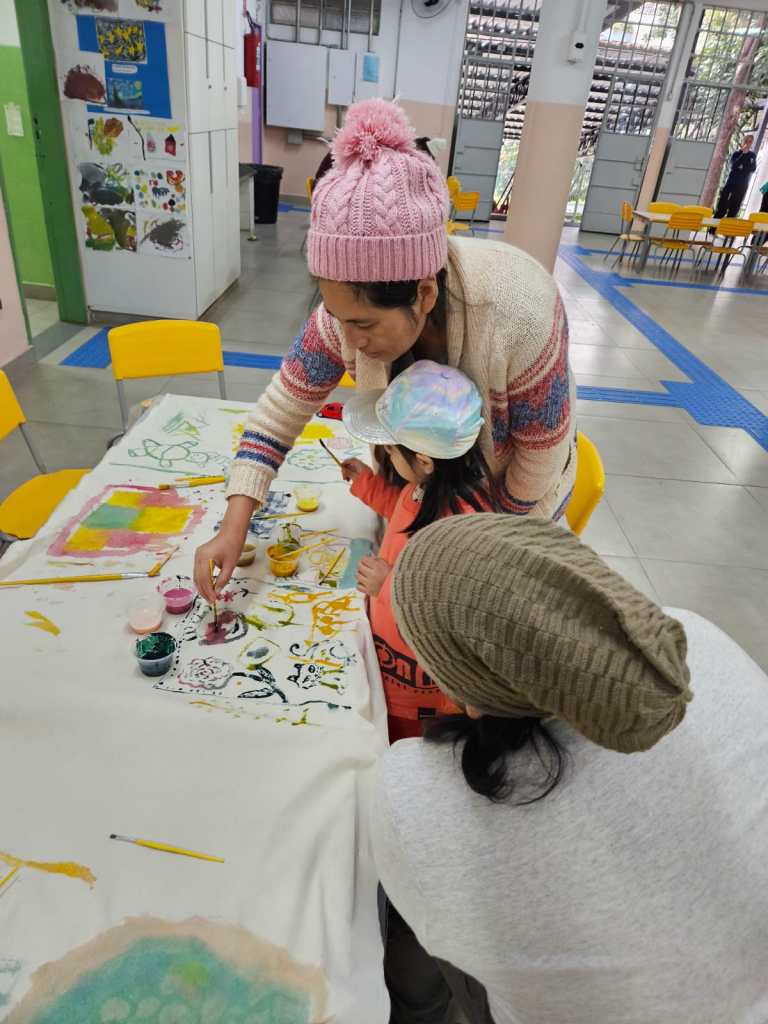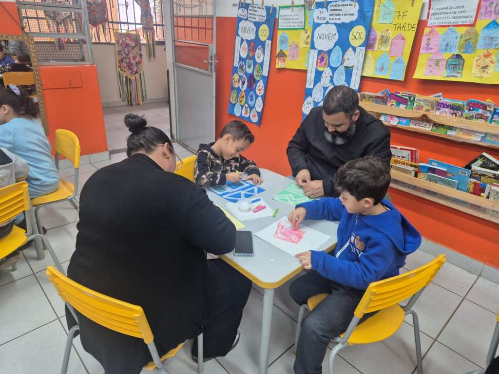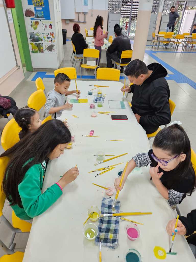 As famílias puderam experimentar um pouco do modo como seus filhos e filhas aprendem, através de brincadeiras, vivências e da experimentação de linguagens artísticas.