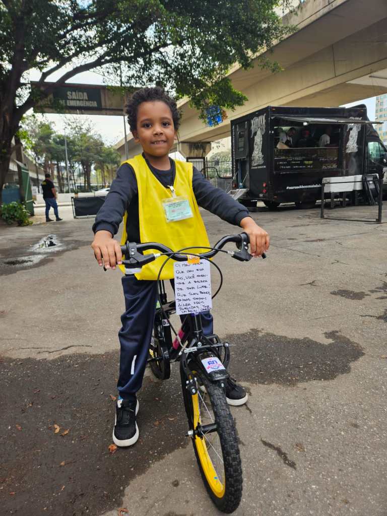 Esse foi o momento da entrega das bicicletas.